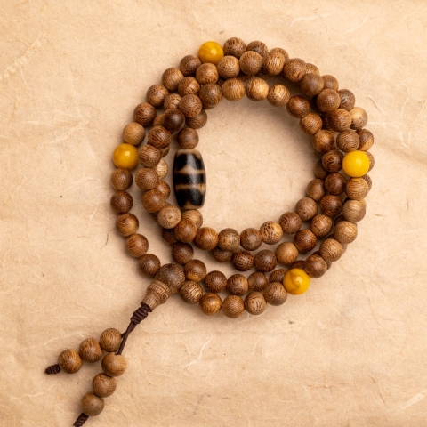 Vòng tay trầm với đá Dzi