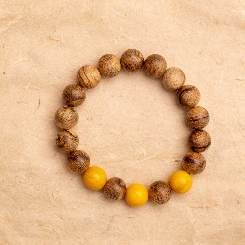 The natural elegance of agarwood meets the soft radiance of yellow coral, creating a bracelet that carries both graceful beauty and gentle energy.