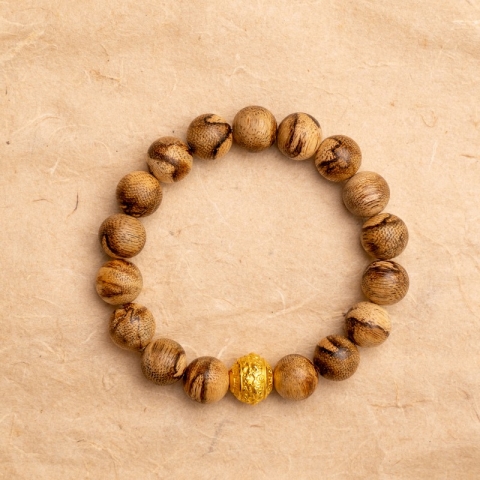 16 hạt trầm tự nhiên 10 ly phối với charm vàng 24K.