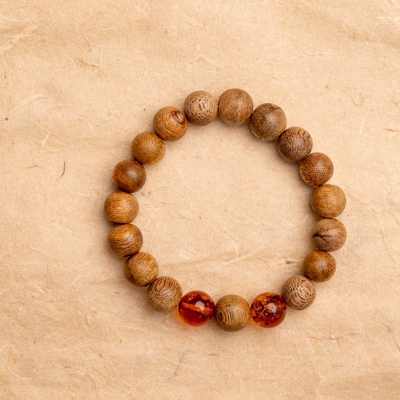 17 hạt trầm tự nhiên 10 ly phối với 2 hạt hổ phách 10 ly.