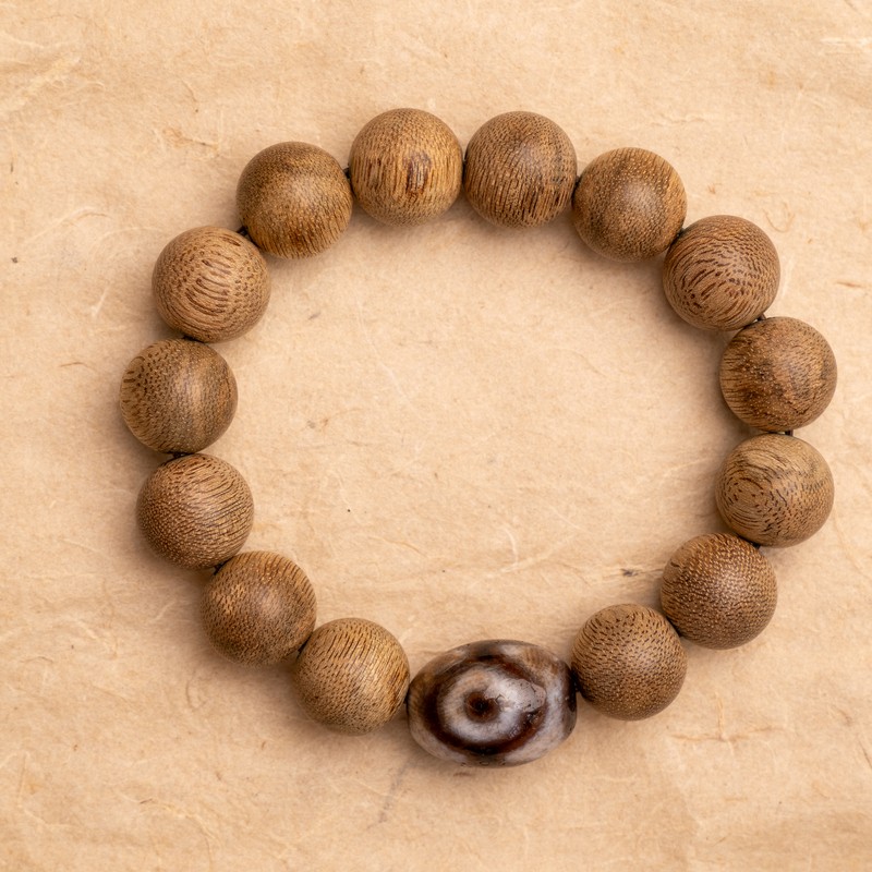 14 hạt trầm vân tự nhiên 14 ly phối với Dzi Tây Tạng Nhất Nhãn.
