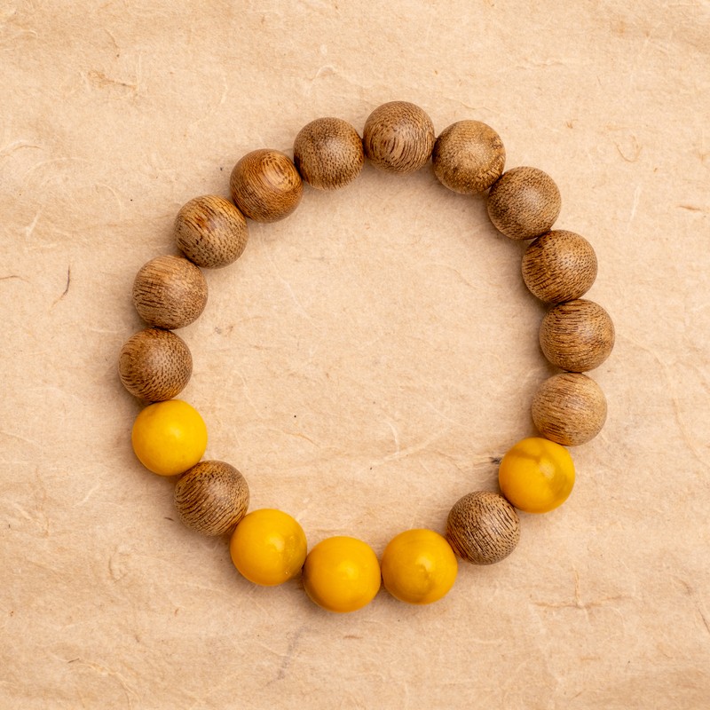 13 hạt trầm tự nhiên 10 ly phối với 5 hạt san hô vàng 10 ly, phụ liệu bạc Thái.